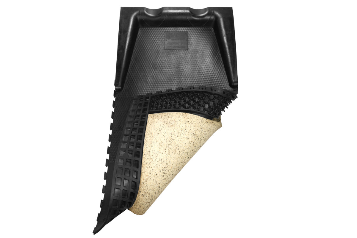 The cow mat incorporates an integrated brisket board at the front and pillow on two sides. This unique feature is a ‘world first’ and ensures optimum positioning of the cow when lying in the cow cubicle.