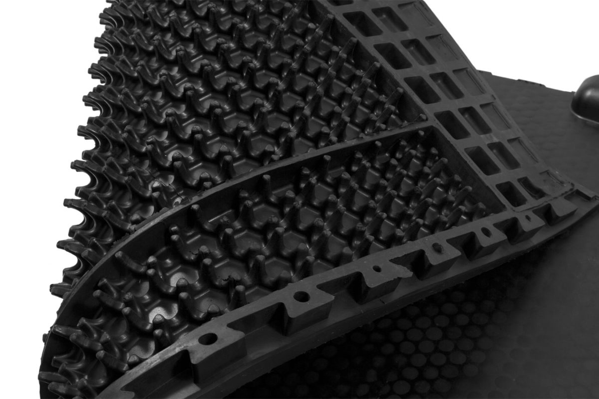 The back of the mat has been designed with a sloped and non-abrasive profile which ensured animal waste is pushed into the passageway.